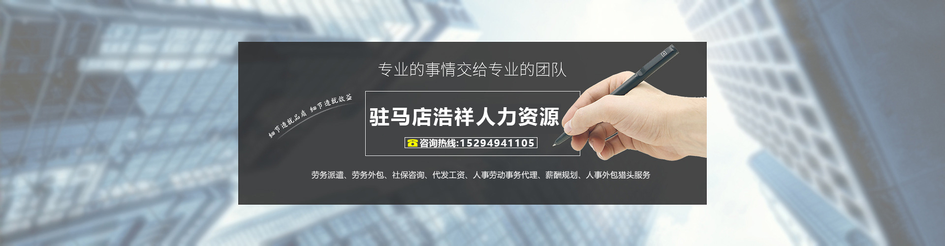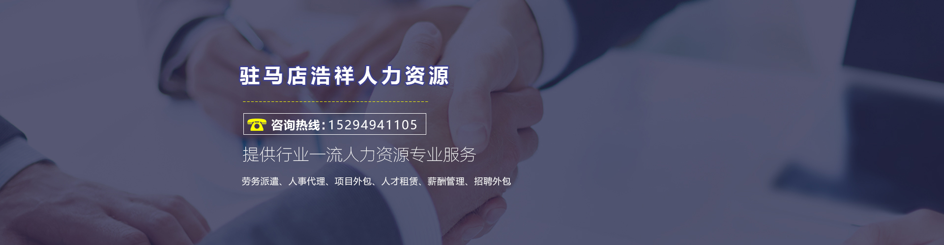 駐馬店市浩祥人力資源有限公司是一家專注于高端人才推薦、專業技能人才挖掘、優秀人才輸送、基層員工培養(職業化培訓)、人事代理、工資與薪酬服務、勞務派遣、福利保險、勞動關系管理的全方位、多層次、綜合性人力資源有限公司。